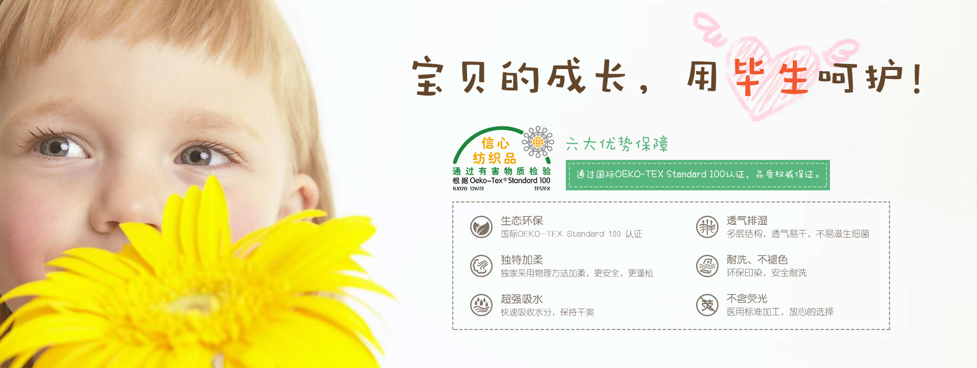 公司共投資6000多萬元人民幣,占地30畝,有260多名員工,有織布、織帶、漂煉、染色、縫紉、數(shù)碼印花六個車間,廠房建筑面積約16000平方米。主要生產(chǎn)嬰兒紡織品(OEKO-TEX, Standard100中的Ⅰ類產(chǎn)品)及繃帶(ISO13485中的Ⅰ類產(chǎn)品)。產(chǎn)品主要銷往德國、奧地利、法國、荷蘭、土耳其、日本、馬來西亞、菲律賓、新加坡、智利、安哥拉美國、加拿大及中國內(nèi)地,擁有環(huán)球影城、AEON等知名品牌的生產(chǎn)授權(quán),并通過了BV、TUV、SMTA等公司的社會責(zé)任驗廠;取得了AEON質(zhì)量管理認(rèn)證和OEKO-TEX Standard100的證書(BJ020126111 TESTEX),是一批國際國內(nèi)知名品牌的代工企業(yè),如:西松屋、noukies、KUB、好孩子、英氏、巴拉巴拉等。